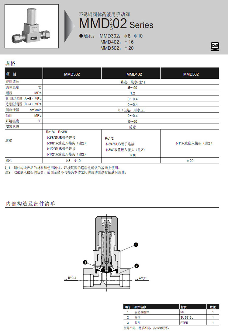 MMD302-8,MMD402-15,MMD502-8BT,MMD302-3BT,MMD302-6S,MMD402-12S,MMD502-16S,CKD药液用手动阀