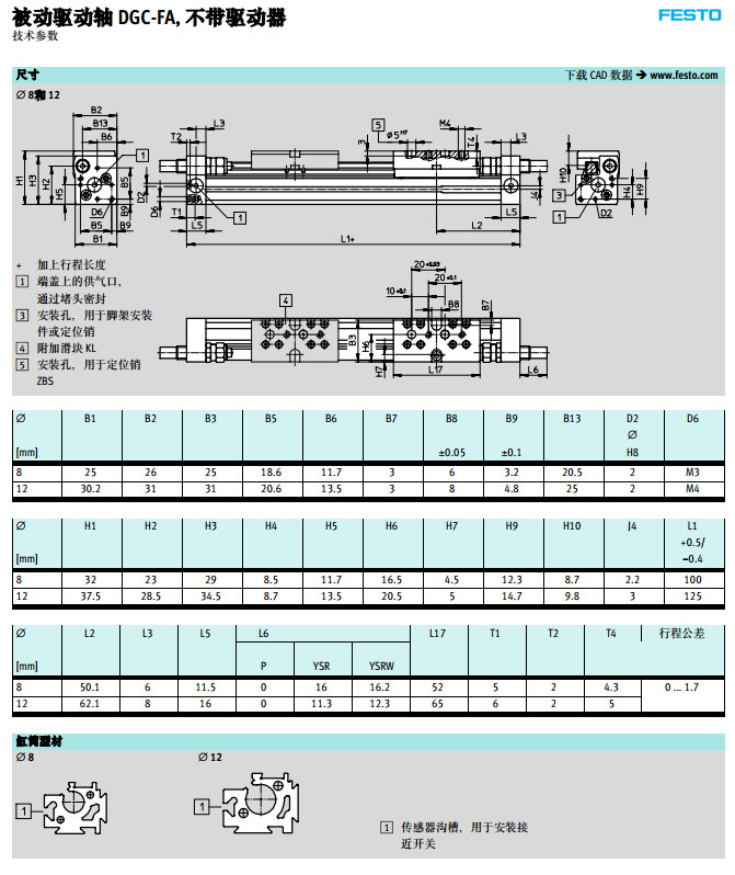 DGC-8-500-FA,DGC-12-500-FA,DGC-25-500-FA,DGC-32-500-FA,festo无杆气缸