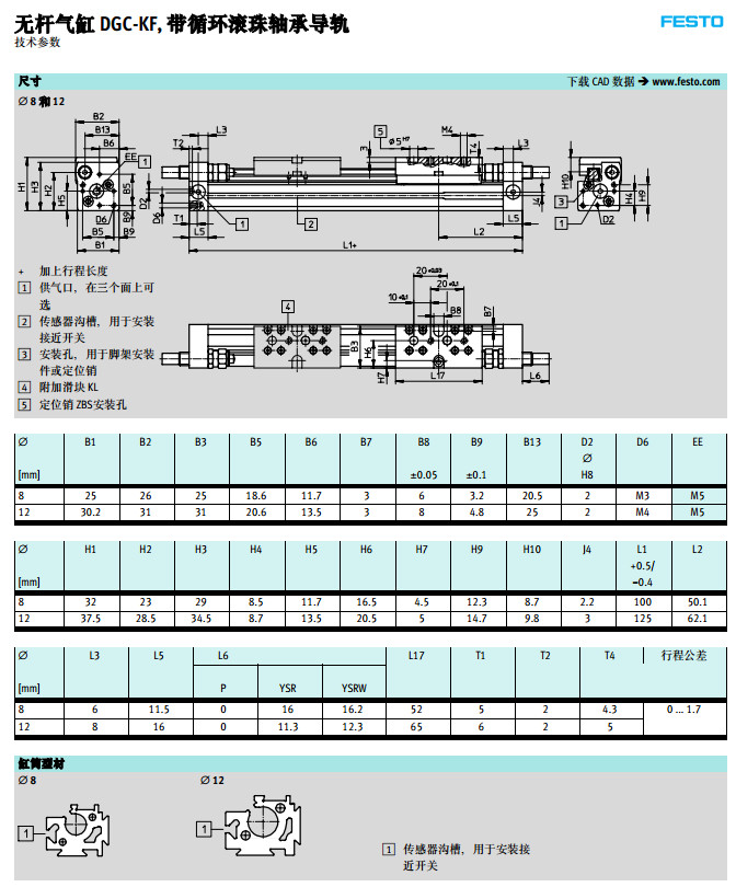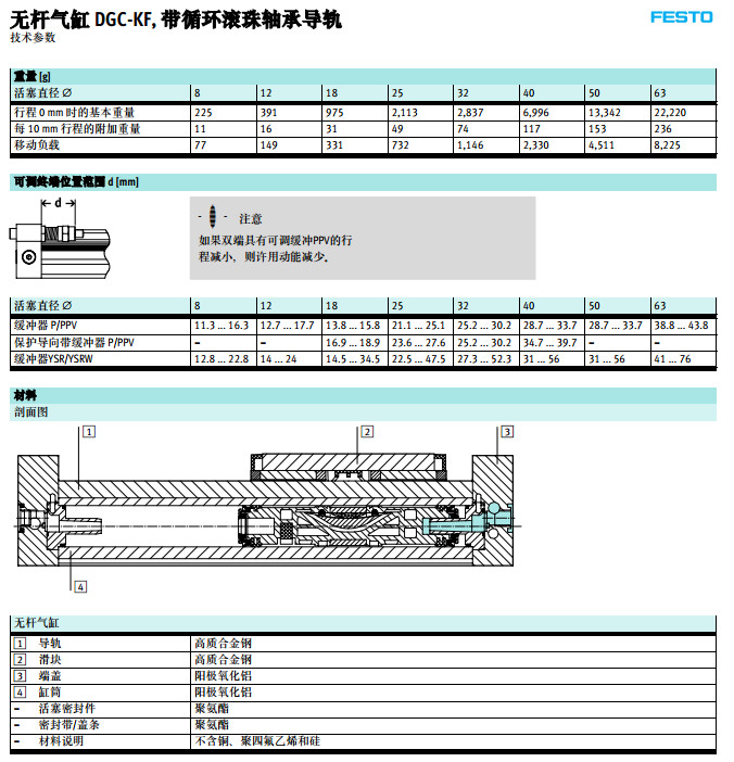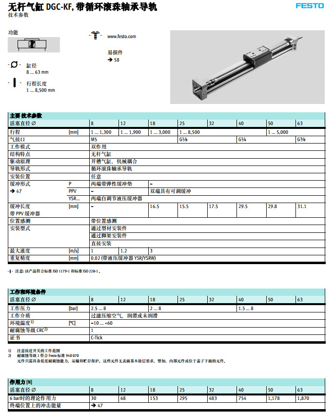 DGC-8-1000-KF,DGC-12-1000-KF,DGC-25-1000-KF,DGC-32-1000-KF,festo无杆气缸
