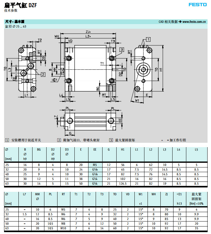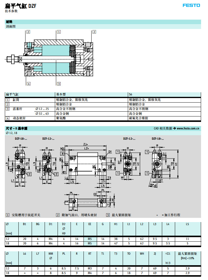 DZF-12,DZF-18,DZF-25,DZF-32,DZF-40,DZF-50,DZF-63,festo扁平气缸