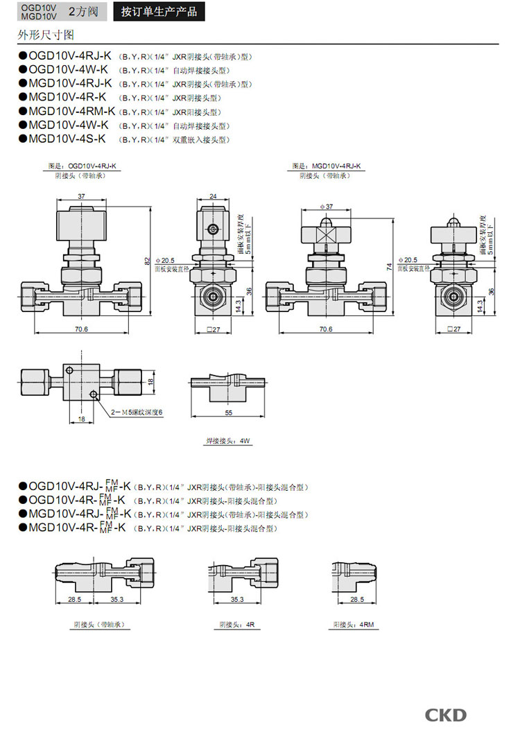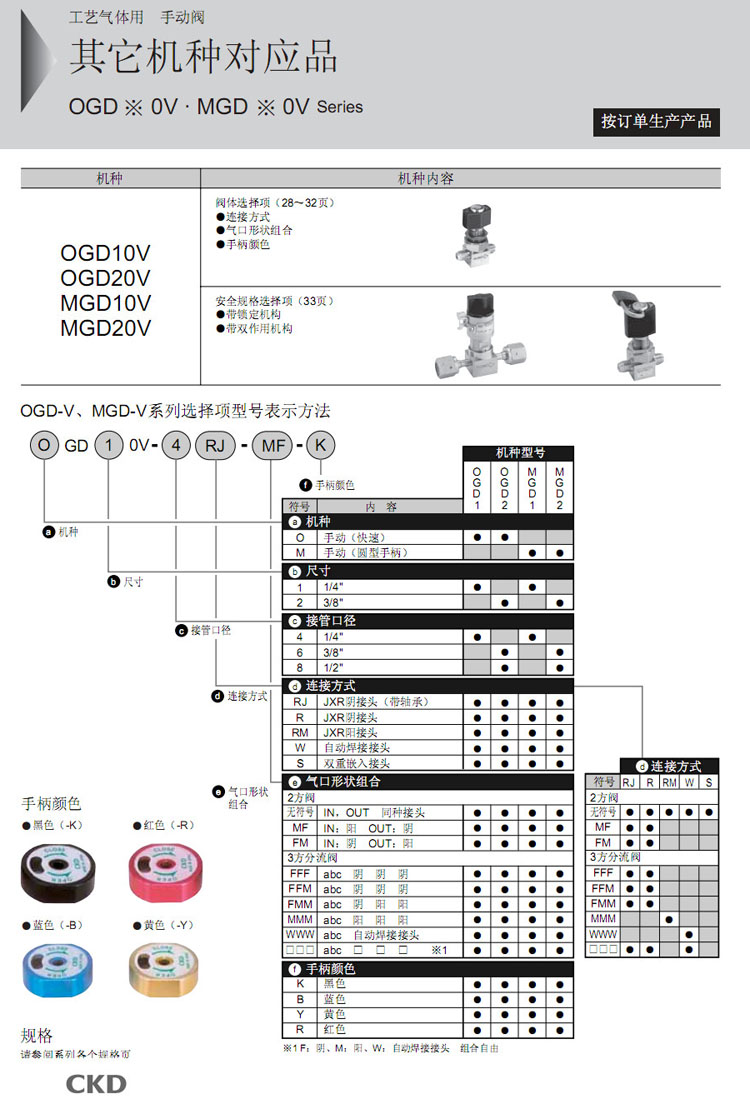 OGD10V-4RJ,OGD20V-6RJ,OGD20V-8RJ,MGD10V-4RJ,MGD20V-6RJ,MGD20V-8RJ,CKD手动阀