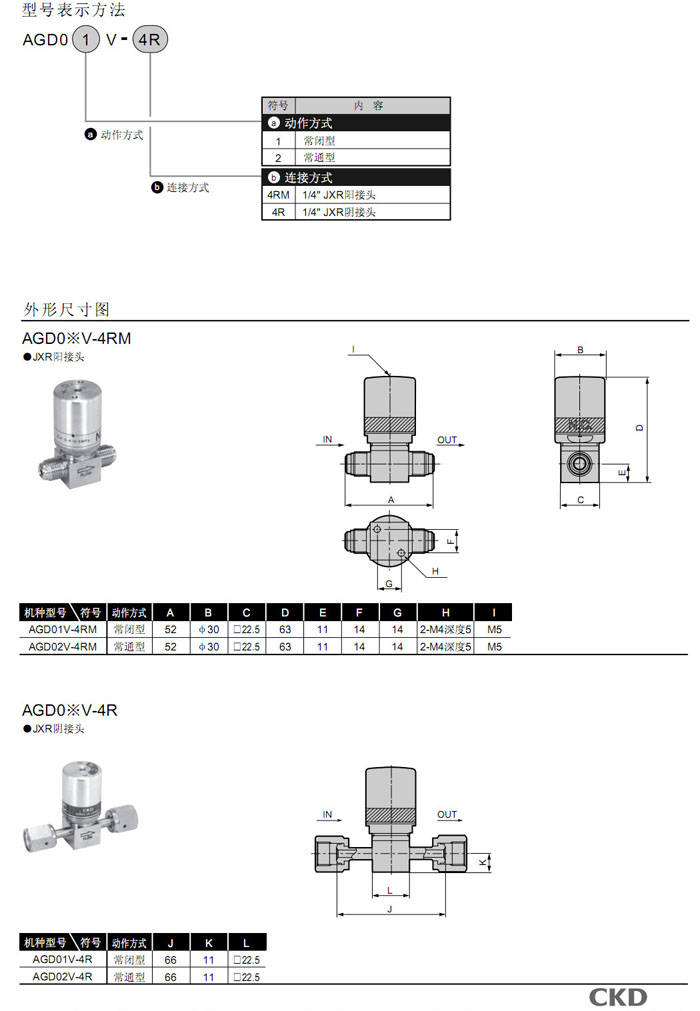 AGD01V-4RM,AGD02V-4RM,AGD01V-4R,AGD02V-4R,CKD气动阀