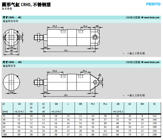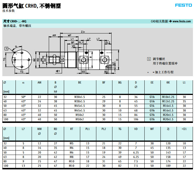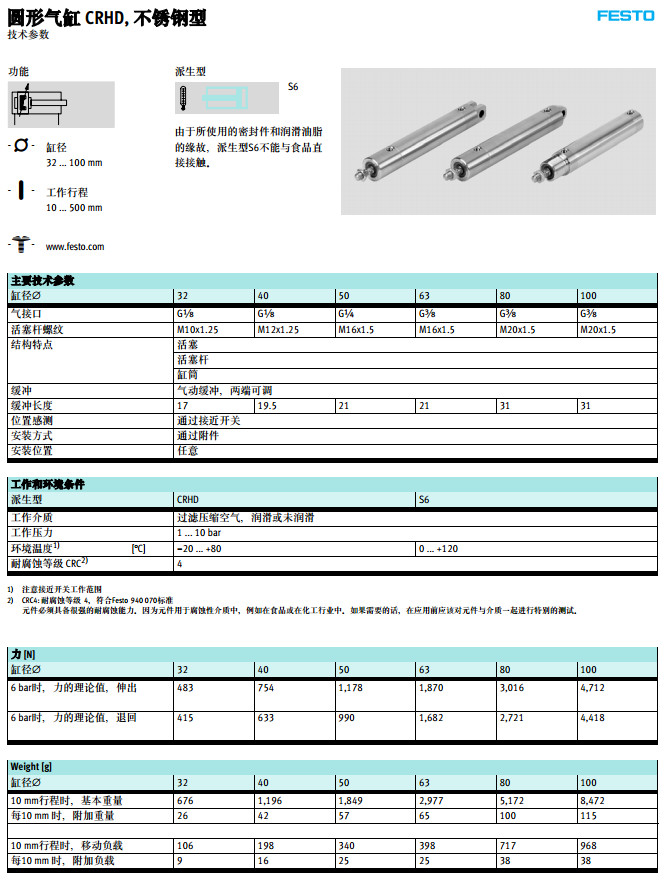 CRHD-32,CRHD-40,CRHD-50,CRHD-63,CRHD-80,CRHD-100,festo圆形气缸