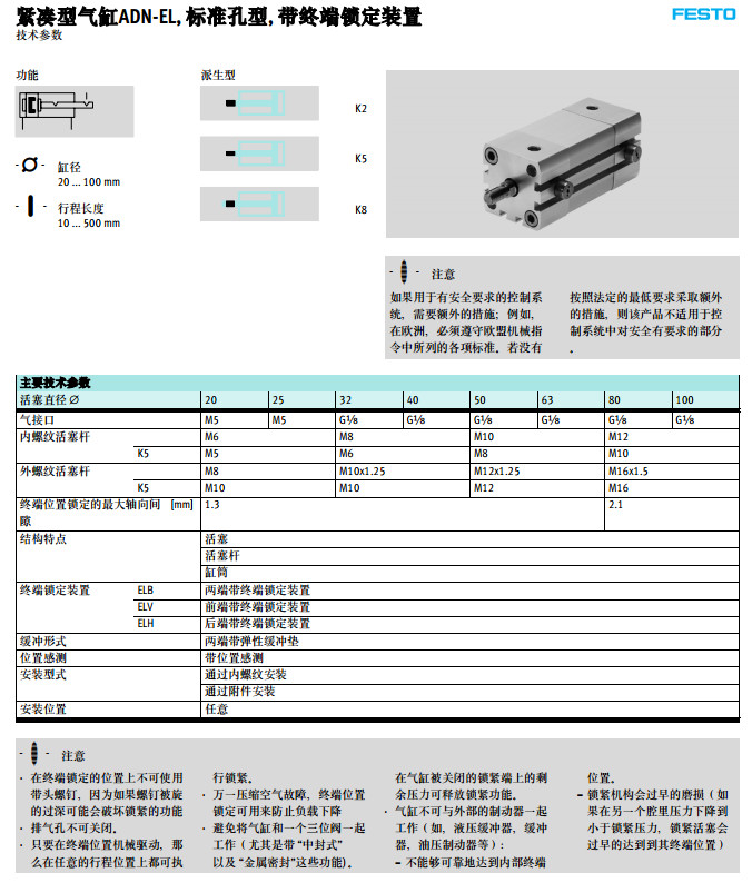 ADN-20-100-ELH-A-P-A-K8,ADN-25-100-ELH-A-P-A-K8,ADN-32-100-ELH-A-P-A-K8,
