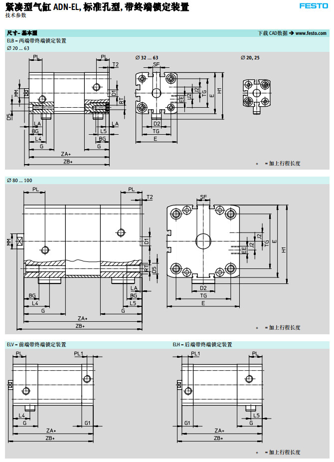 ADN-20-100-ELV,ADN-40-100-ELB,ADN-80-100-ELH,festo紧凑型气缸