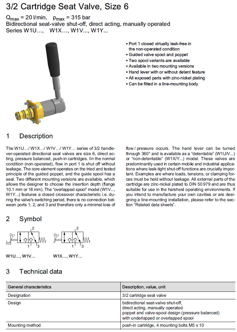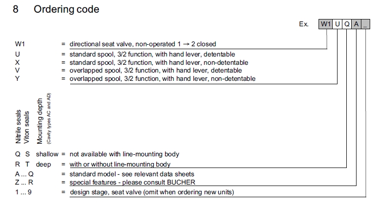 W1UQA1,W1XQA1,W1VQA1,W1YQA1,W1URA1,W1XRA1,W1VRA1,W1YRA1,Bucher方向阀