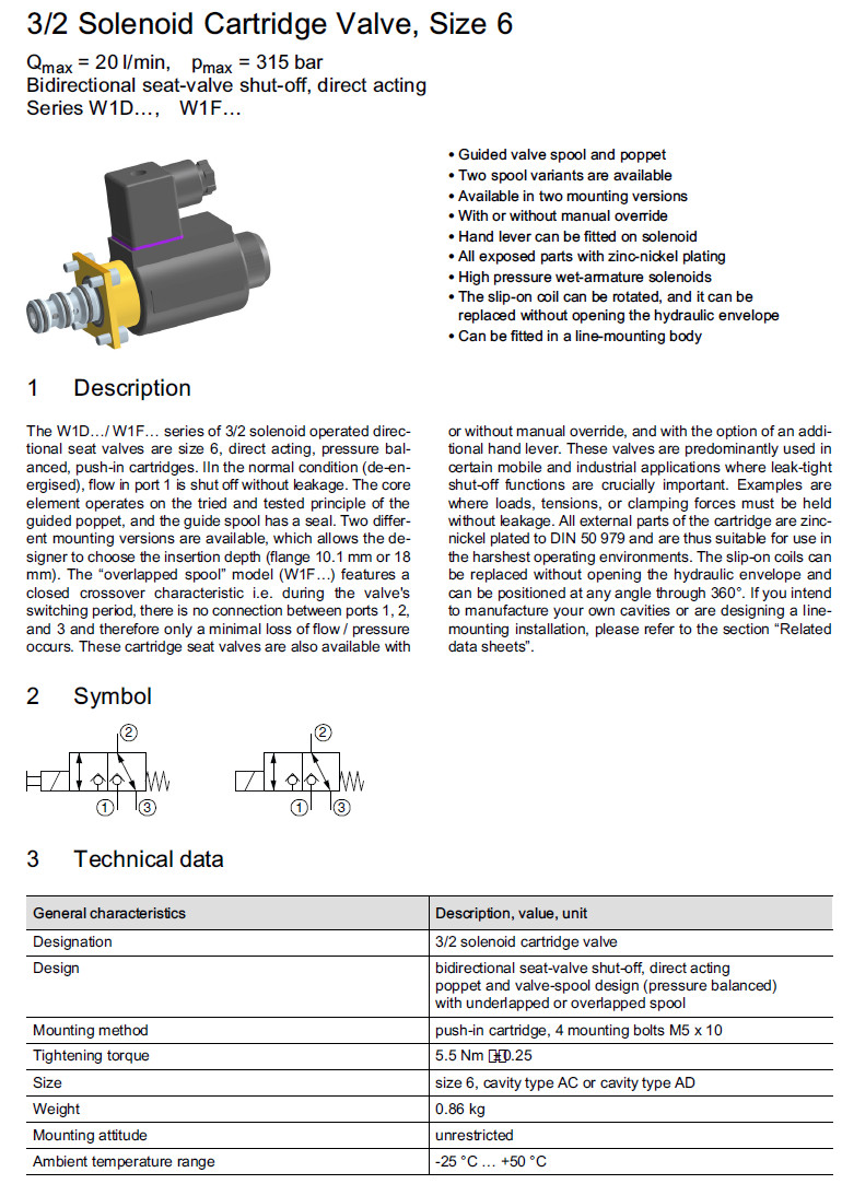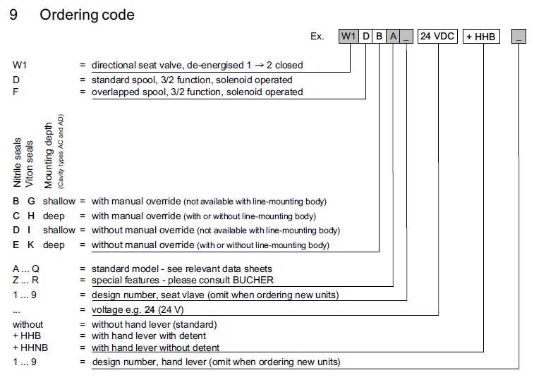 W1DBA1-24VDC,W1DCA1-24VDC,W1DDA1-24VDC,W1DEA1-24VDC,W1FBA1-24VDC,Bucher方向阀