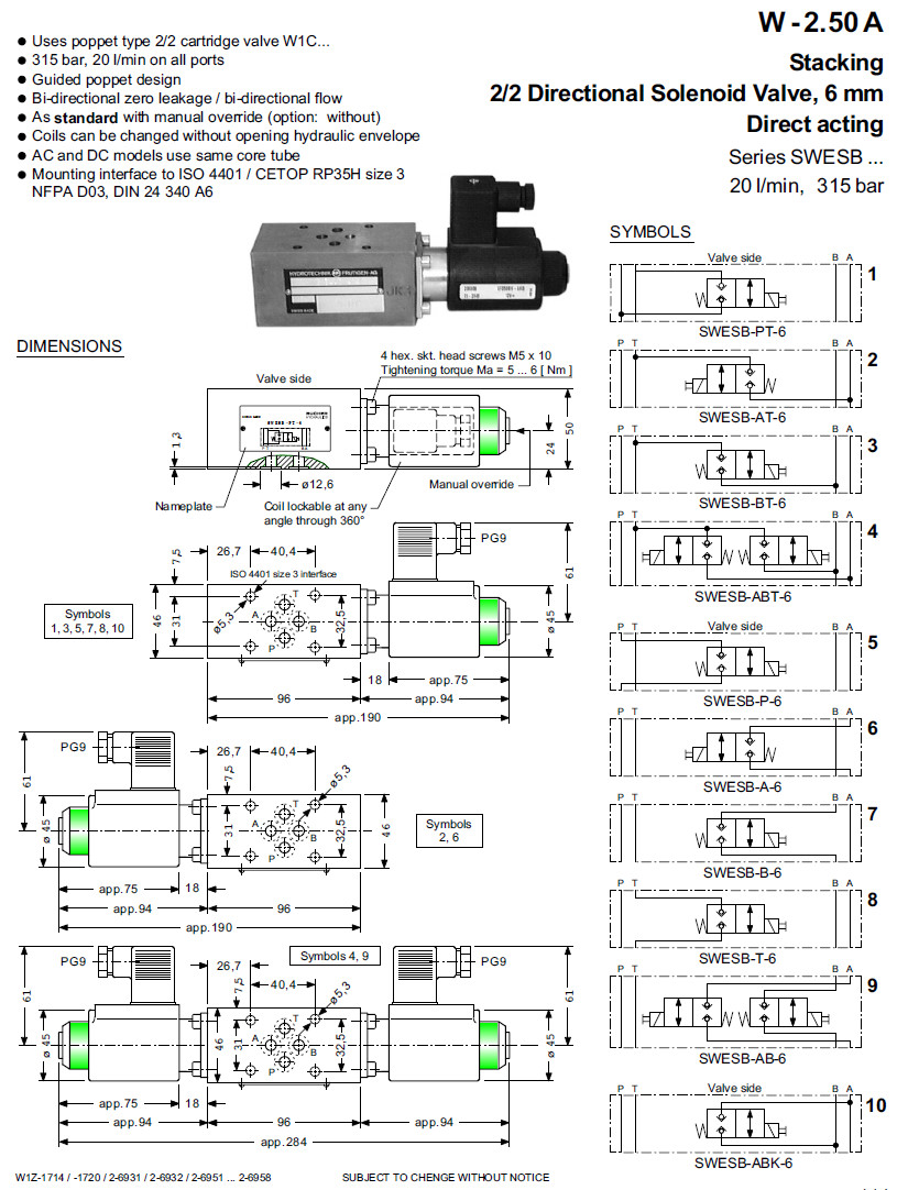 SWESB-P-6-24VDC,SWESB-A-6-24VDC,SWESB-B-6-24VDC,SWESB-PT-6V-24VDC,Bucher电磁阀