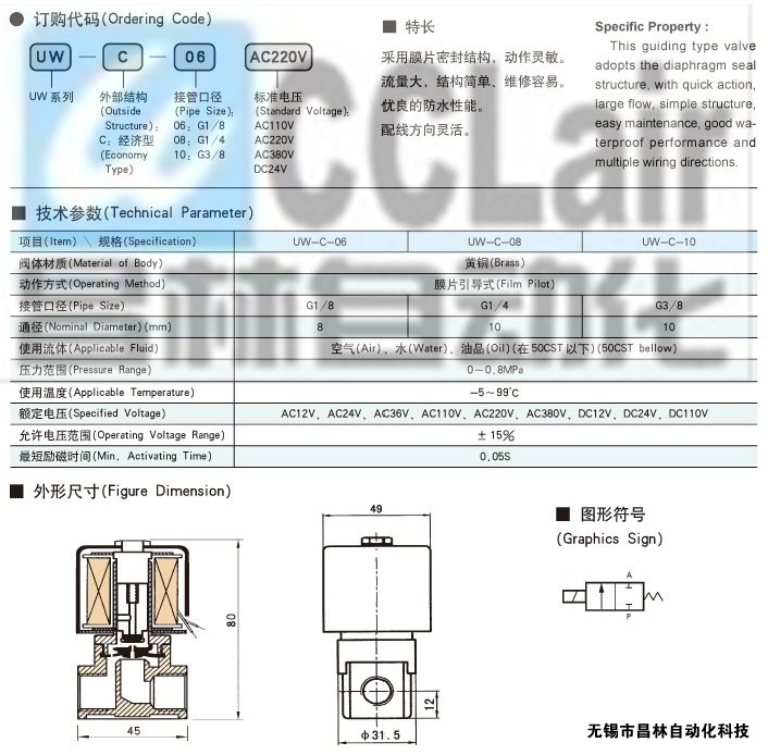 UW-C-06,UW-C-08,UW-C-10,电磁阀