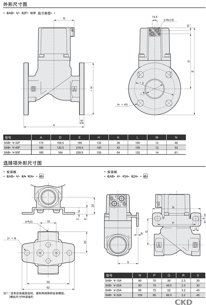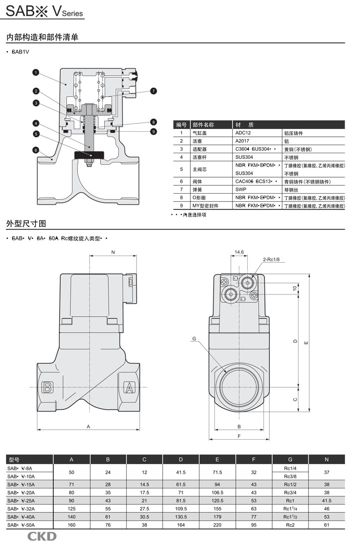 SAB2V-32A,SAB2V-32F,SAB2V-40A,SAB2V-40F,SAB2V-50A,SAB2V-50F,SAB3V-8A,SAB3V-10A,CKD气控式2通阀