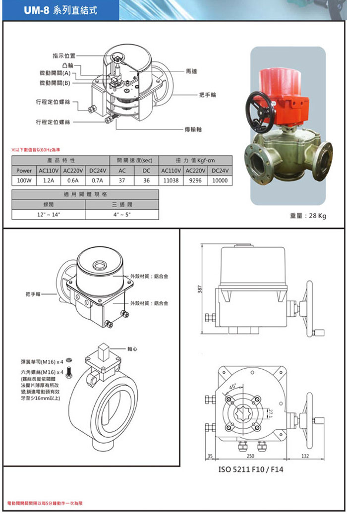 1. 直结式电动马达驱动器需装置在ISO 5211高平台是的凡而或蝶阀上。