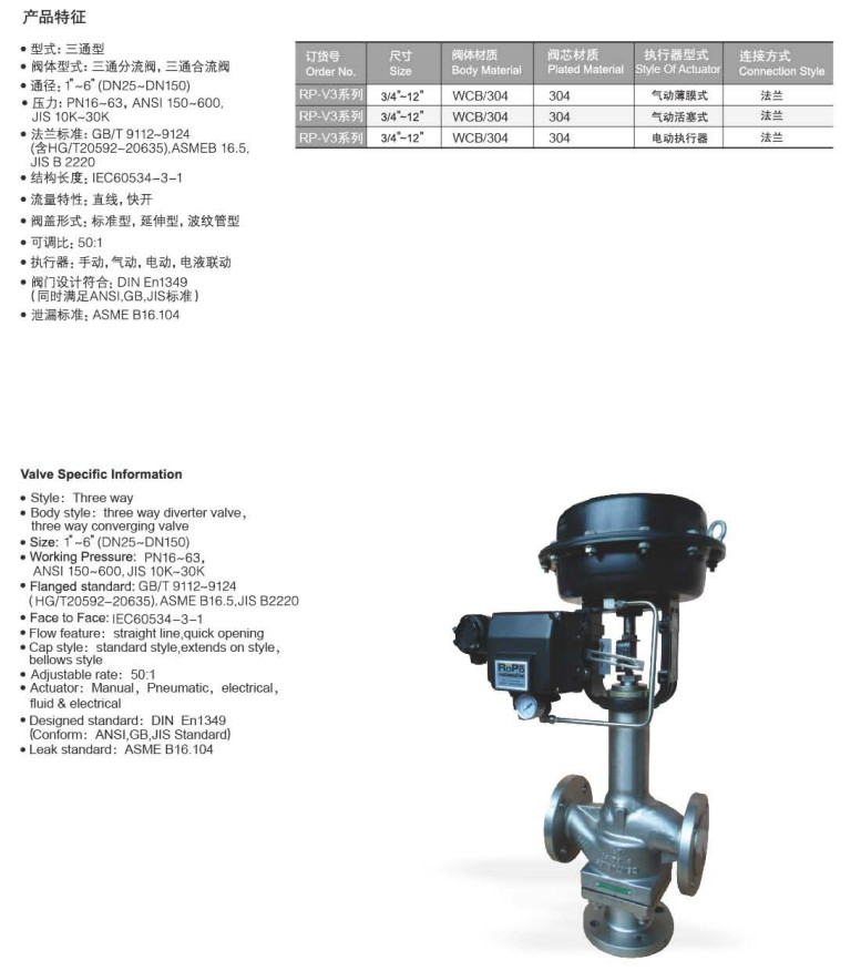 RV-V3-DN25,RV-V3-DN40,RV-V3-DN50,RV-V3-DN65,RV-V3-DN80,RV-V3-DN100,RV-V3-DN125,RV-V3-DN150,三通调节阀 |