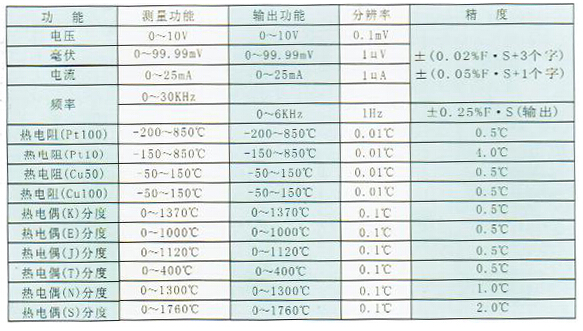 ●微电脑控制,多种功能:可测量和模拟输出各种热电偶和热电阻信号,0-20mA电流信号,0-5V电压信号及冷端室温温度。