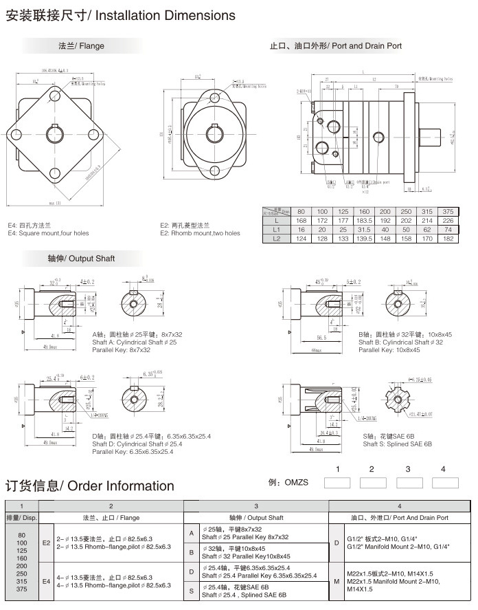 OMZS80,OMZS100,OMZS125,OMZS160,OMZS200,OMZS250,OMZS315,OMZS375,摆线马达