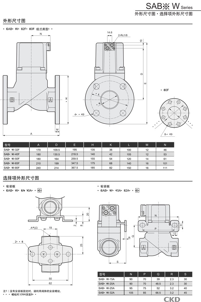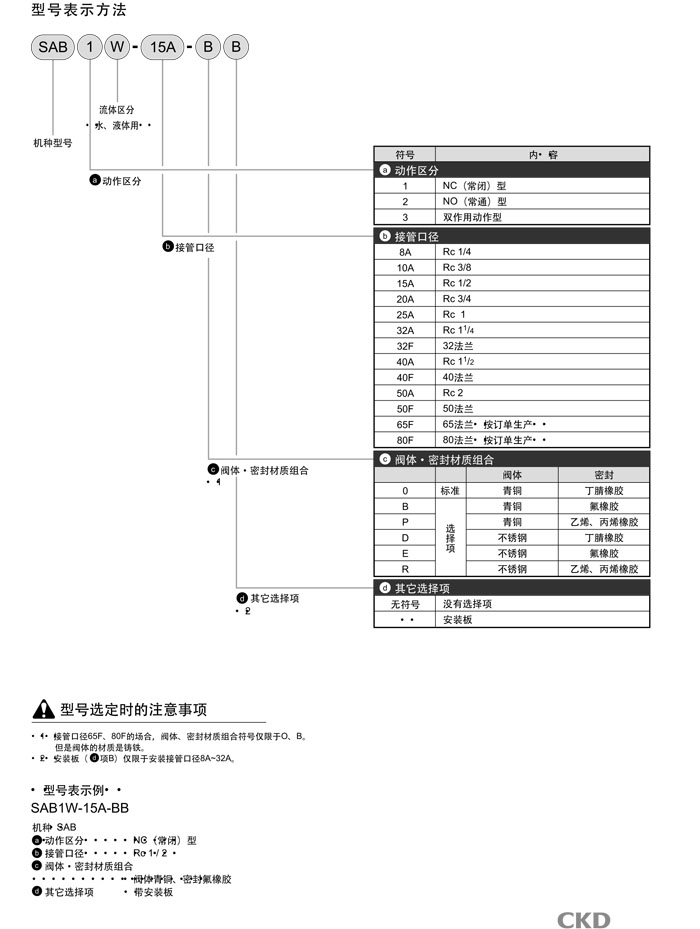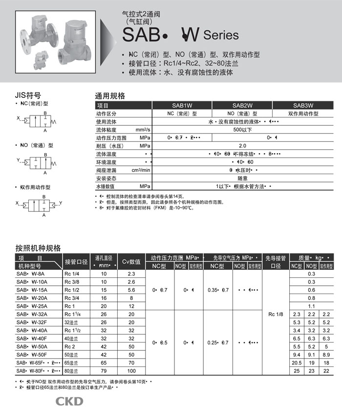 SAB1W-8,SAB1W-10,SAB1W-15,SAB1W-20,SAB1W-25,SAB1W-32,SAB1W-40,SAB1W-65,SAB1W-80,CKD气控式2通阀