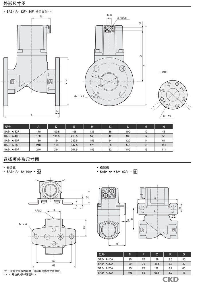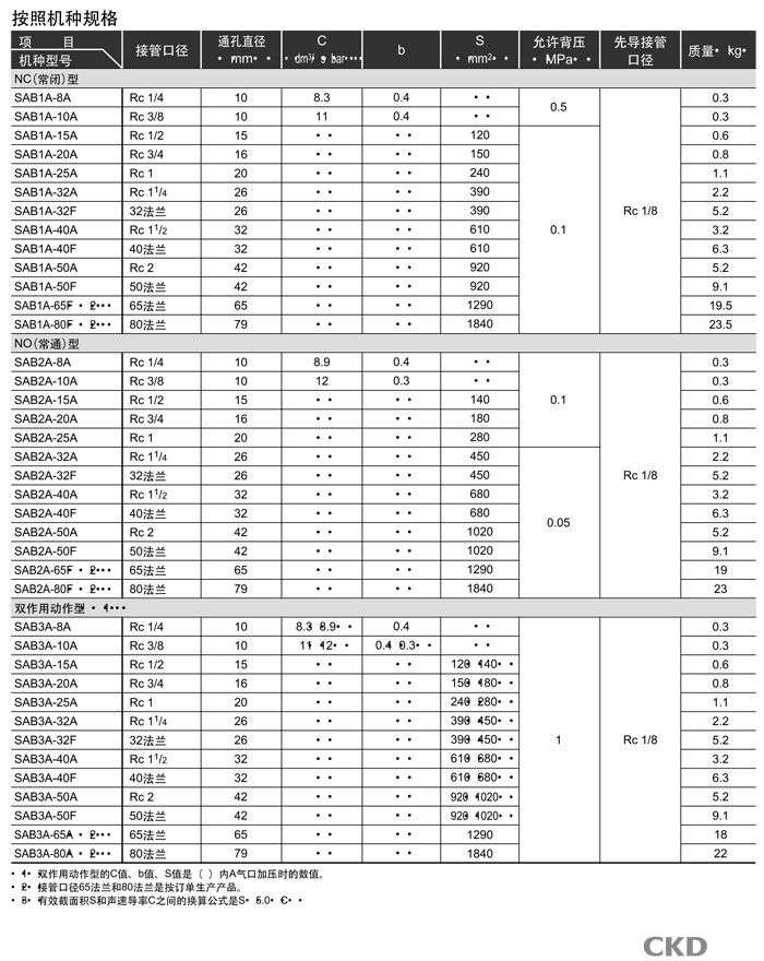 SAB1A-40F,SAB1A-50A,SAB1A-50F,SAB2A-8A,SAB2A-10A,SAB2A-15A,SAB2A-20A,SAB2A-25A,CKD气控式2通阀