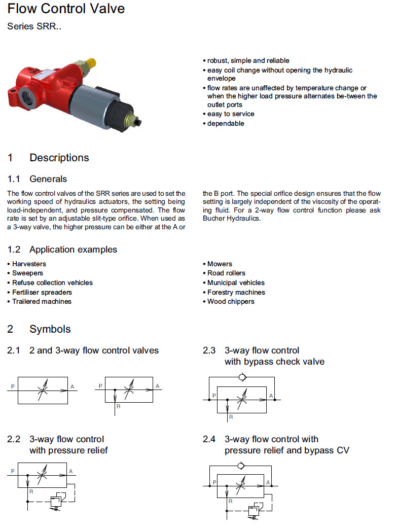 SRRB050S3M-0G12-RP,SRRB050N3M-0G12-RP,SRRB050T3M-0G12-RP,Bucher流量控制阀