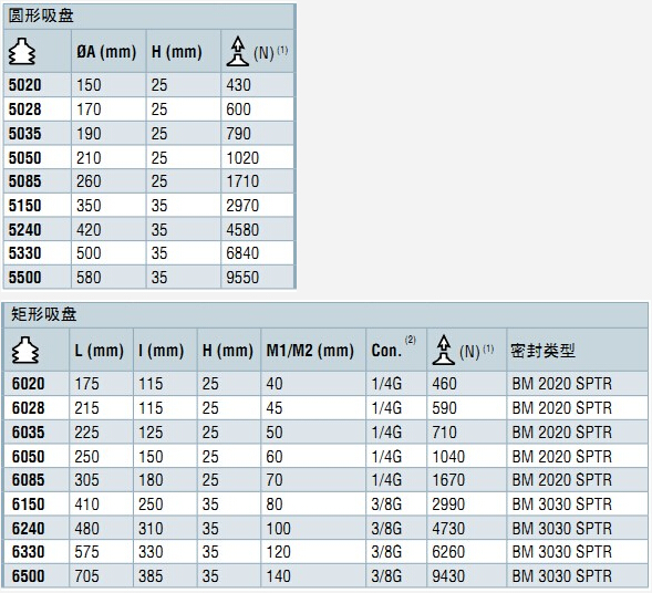 5020,5028,5035,5050,5085,5150,5240,6035,6050,6085,6150,6240,6330,6500,5330,5500,6020,6028,COVAL粘结密封钢吸盘