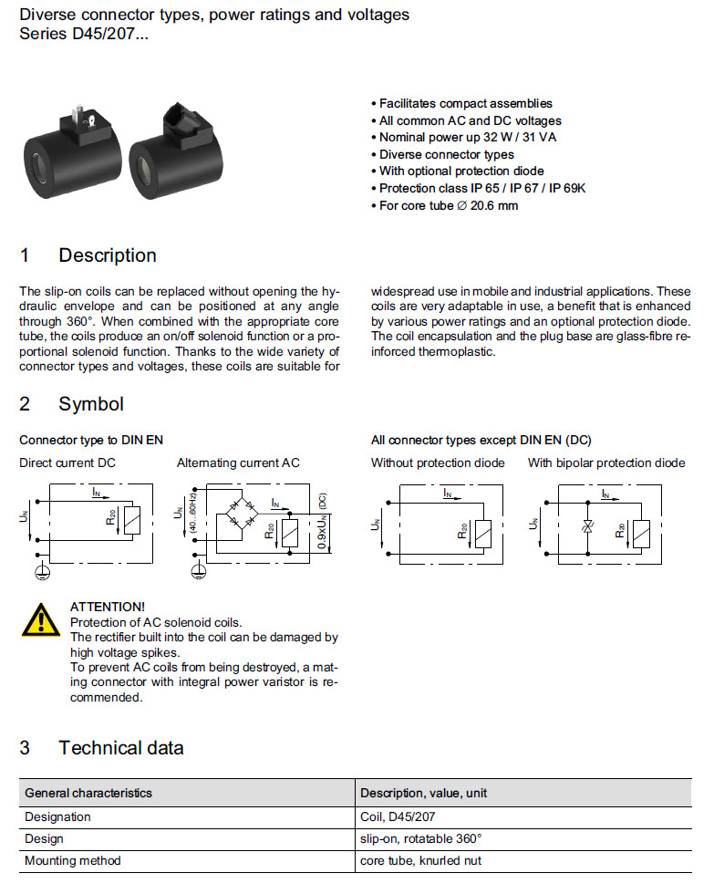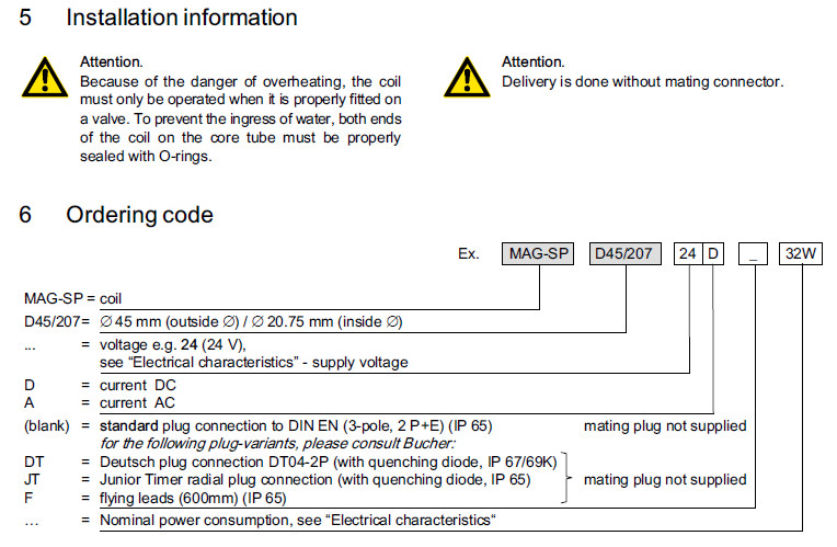 MAG-SP-D45/207-24D-27W,MAG-SP-D45/207-24D-DT-27W,MAG-SP-D45/207-24A-JT-27W,Bucher电磁阀线圈