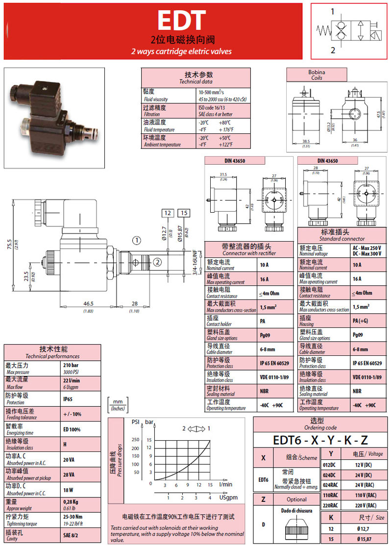 EDT6-012DC,EDT6-024DC,EDT6-024RAC,EDT6-110RAC,EDT6-220RAC,电磁换向阀