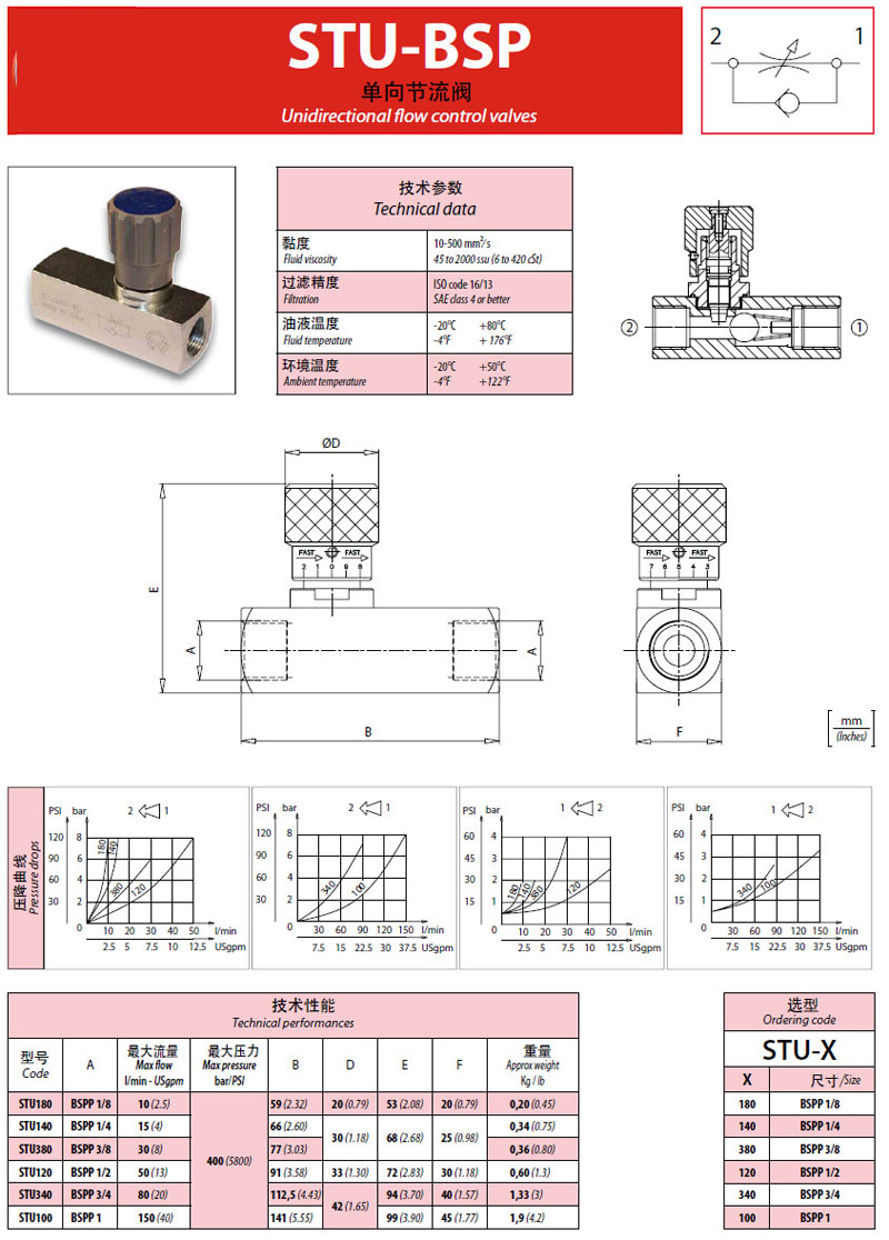 STU180,STU140,STU380,STU120,STU340,STU100,单向节流阀