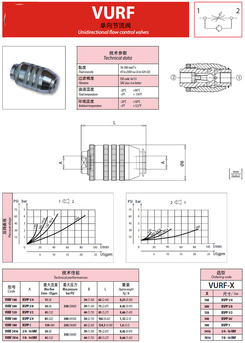 VURF140,VURF380,VURF120,VURF340,VURF100,VURF3416,VURF7814,单向节流阀