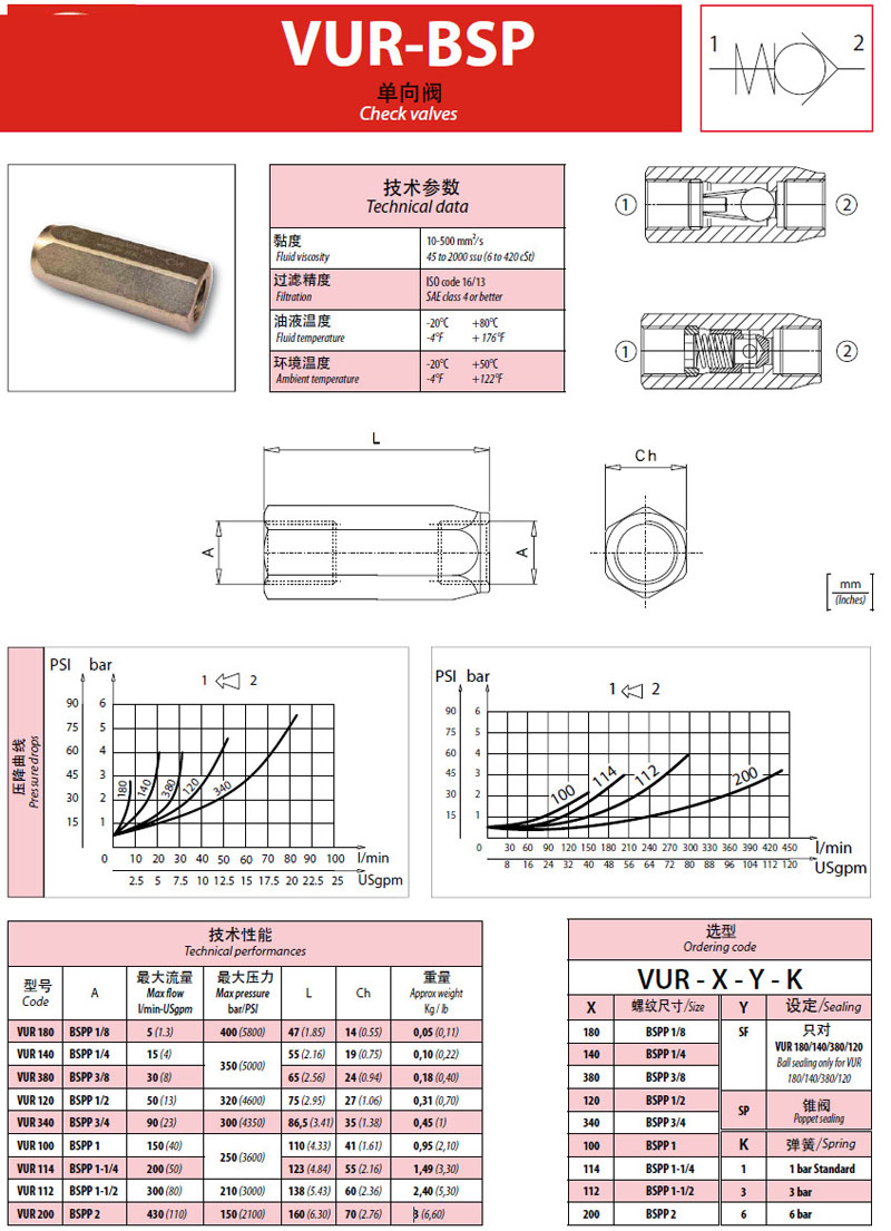 VUR180,VUR140,VUR380,VUR120,VUR340,VUR160,VUR114,VUR112,VUR200,单向阀