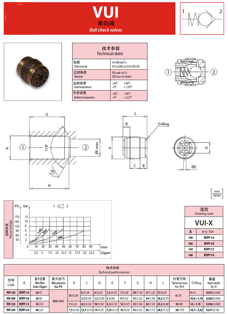 VUI140,VUI120,VUI340,VUI380,单向阀