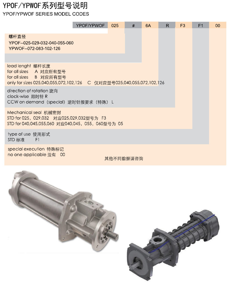 YPOF025,YPOF032,YPOF040,YPOF055,YPOF060,YPWOW072,YPWOW083,三螺杆泵
