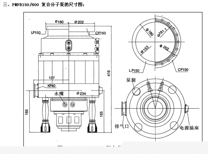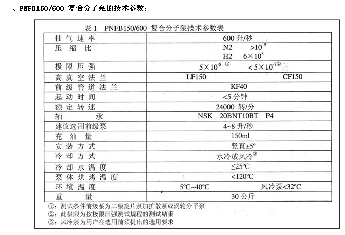 二、PNFB150/600 复合分子泵的技术参数: