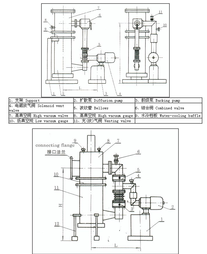 JKT、JK系列油扩散真空泵机组是用来获得高真空(10-2—10-5Pa)的主要设备。它以油扩散泵为主泵和阀门、水冷挡板、管道、机械真空泵(前级泵)等组成高真空抽气系统,可获得(10-2—10-4Pa)的工作真空度。