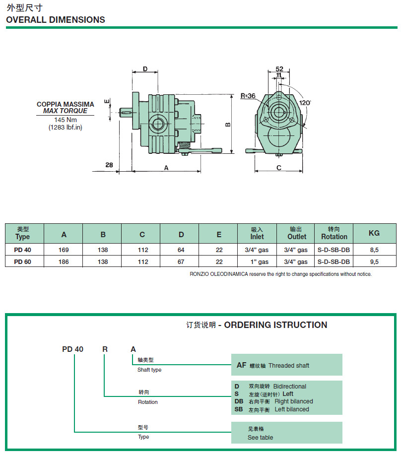 PN40-D-A,PN60-D-A,PN40-S-A,PN60-S-A,PN40-DB-A,PN60-DB-A,PN40-SB-A,PN60-SB-A,齿轮泵