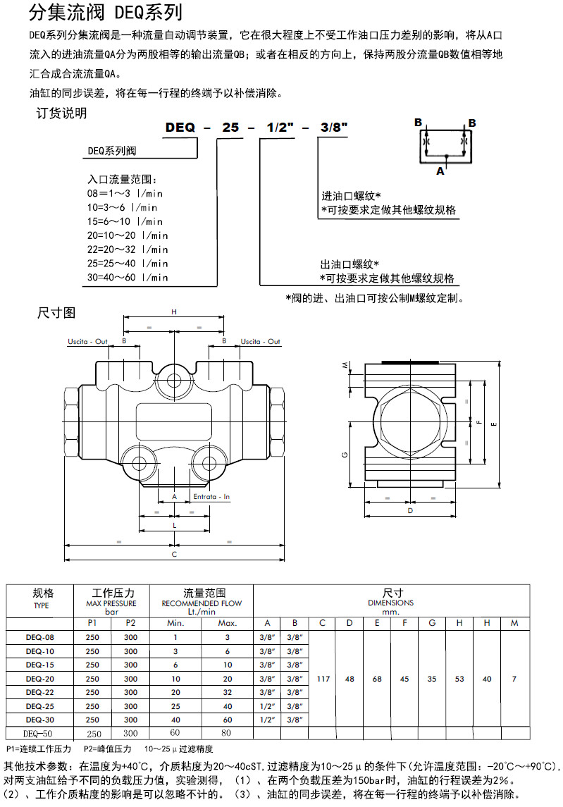 DEQ-08,DEQ-10,DEQ-15,DEQ-20,DEQ-22,DEQ-25,DEQ-30,分集流阀