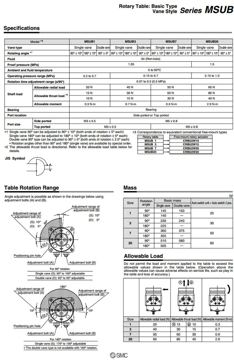 MSUB1-90,MSUB1-180,MSUB3-90,MSUB3-180,MSUB7-90,MSUB7-180,MSUB20-90,MSUB20-180,SMC摆台气缸