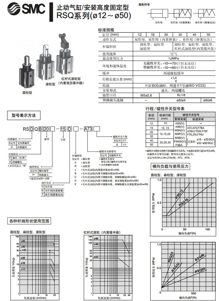 RSDQB12,RSDQB16,RSDQB20,RSDQB32,RSDQB40,RSDQB50,RSDQA12,RSDQA16,RSDQA20,RSDQA32,RSDQA40,RSDQA50,SMC止动气缸