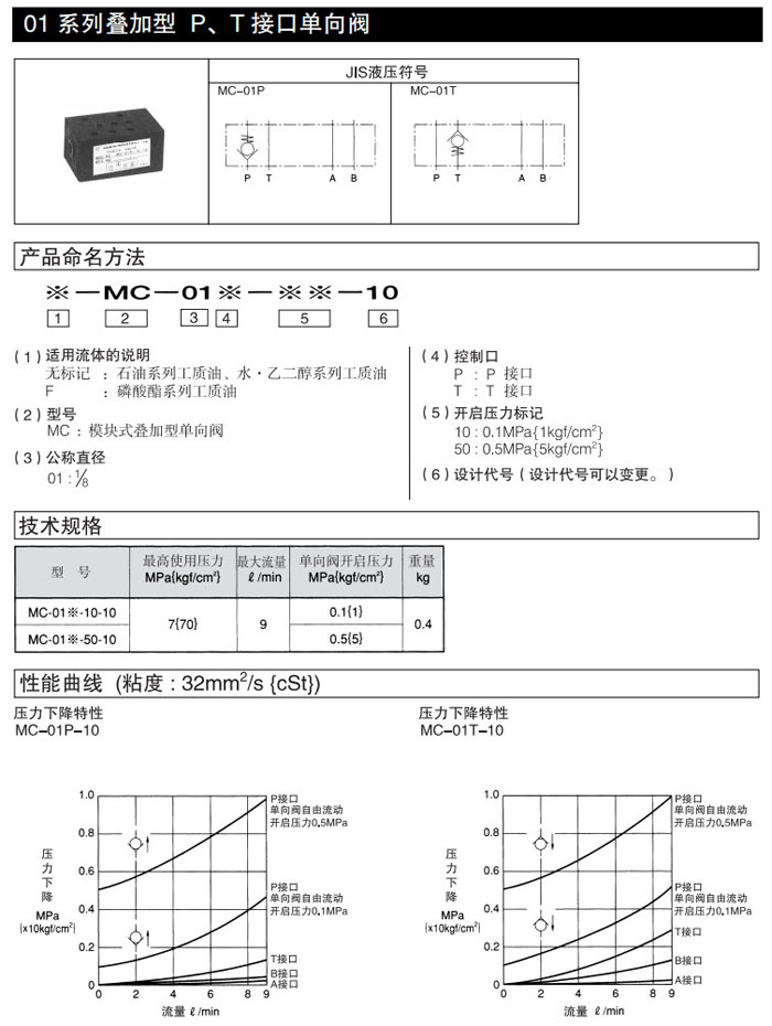 MC-01P-10-10,MC-01P-50-10,MC-01T-10-10,MC-01T-50-10,DAIKIN叠加型接口单向阀