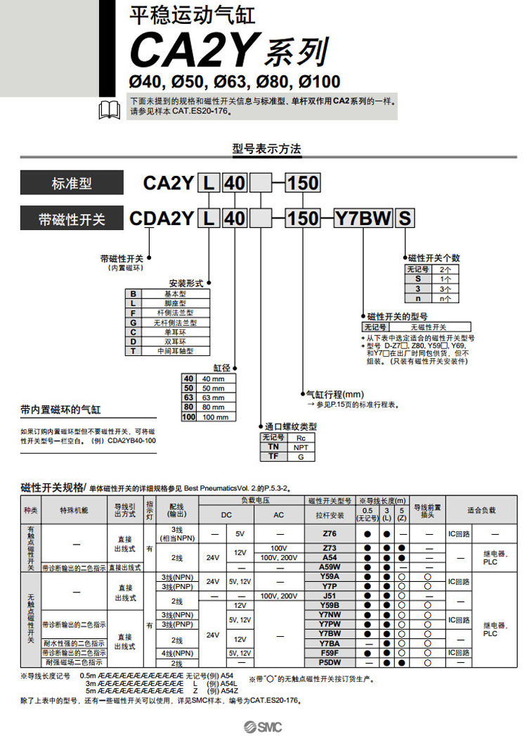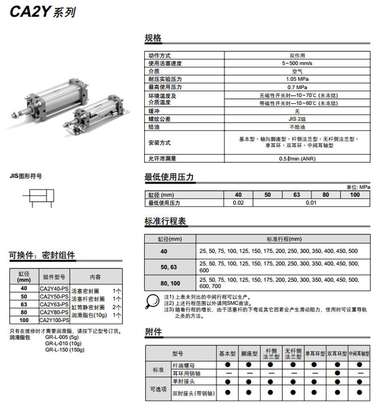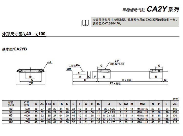 CDA2YT80-350,CDA2YT80-400,CDA2YT80-450,CDA2YT80-500,CDA2YT100-500,CDA2YT100-600,CDA2YT100-700,CDA2YT100-450,SMC平稳运动气缸