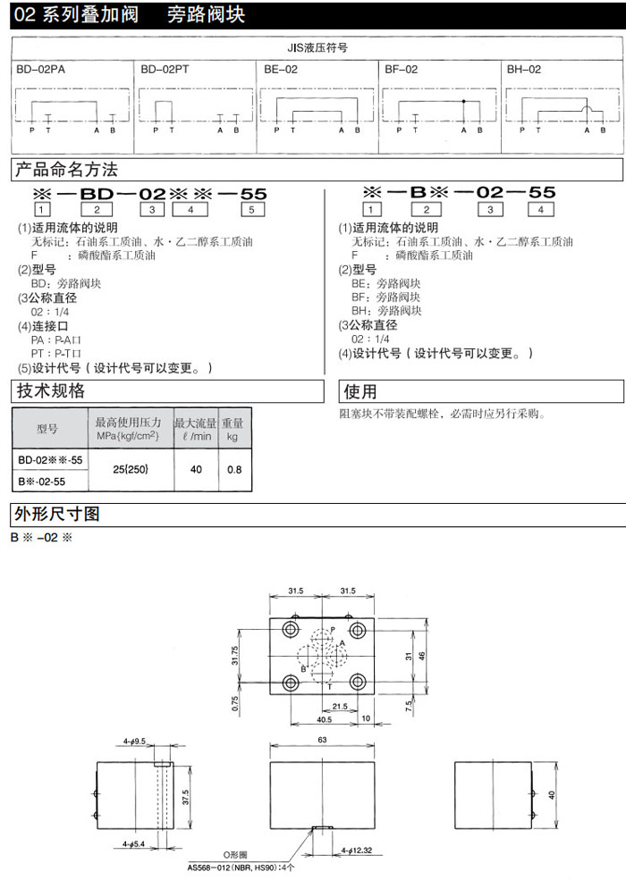 BD-02PA-55,BD-02PT-55,BE-02-55,BF-02-55,BH-02-55,DAIKIN叠加阀旁路阀块