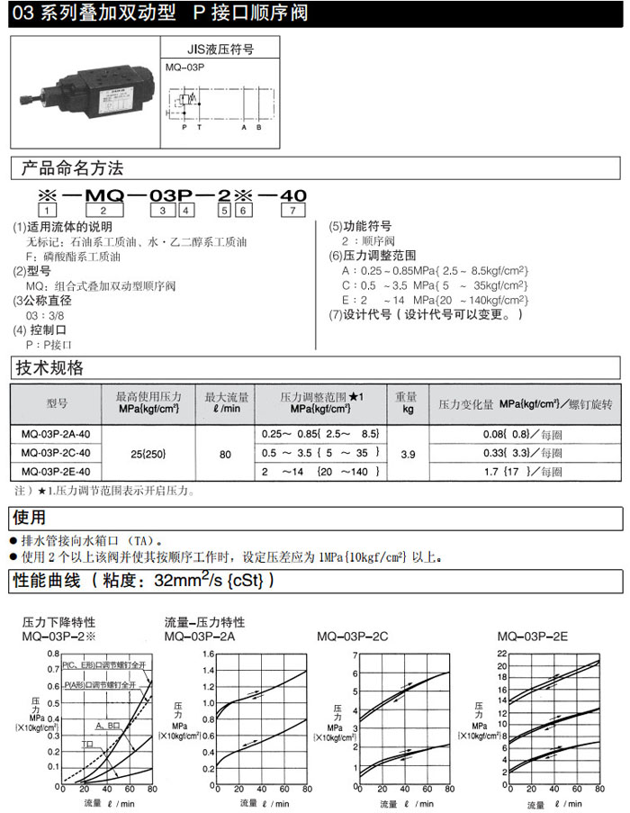 MQ-03P-2A-40,MQ-03P-2C-40,MQ-03P-2E-40,DAIKIN叠加双动型顺序阀