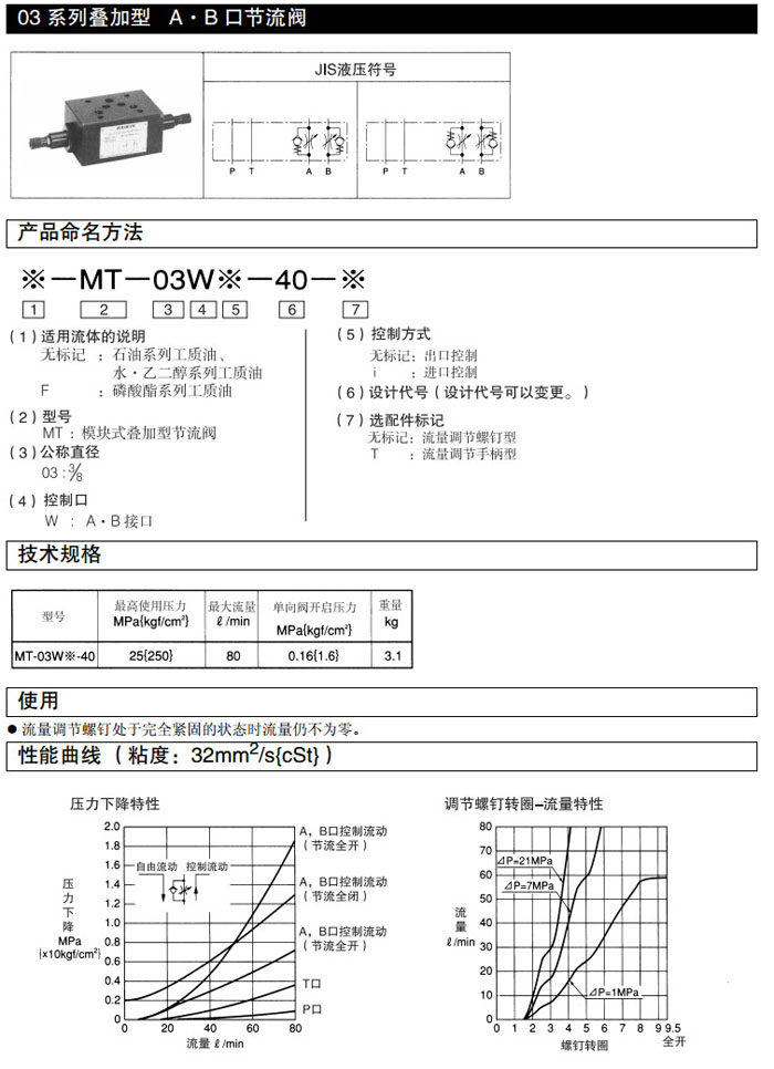 MT-03W-40,MT-03Wi-40,DAIKIN叠加型节流阀