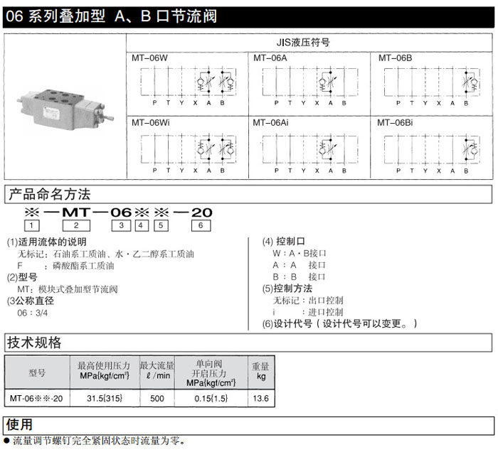 MT-06W-20,MT-06Wi-20,MT-06A-20,MT-06Ai-20,MT-06B-20,MT-06Bi-20,DAIKIN叠加型节流阀