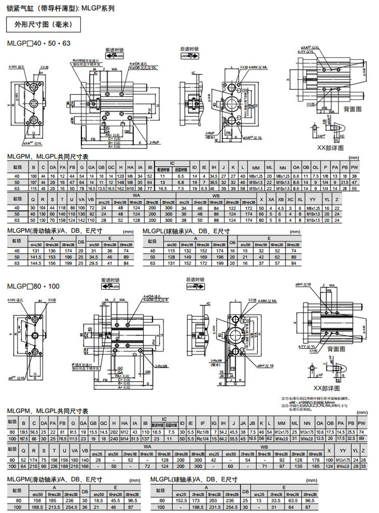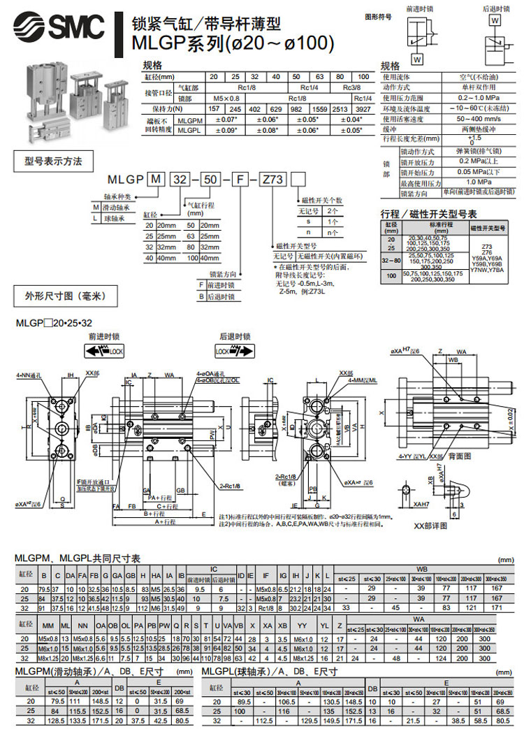 MLGPL20-20,MLGPL25-20,MLGPL32-25,MLGPL40-25,MLGPL50-25,MLGPL63-25,MLGPL80-25,MLGPL100-50,SMC锁紧气缸