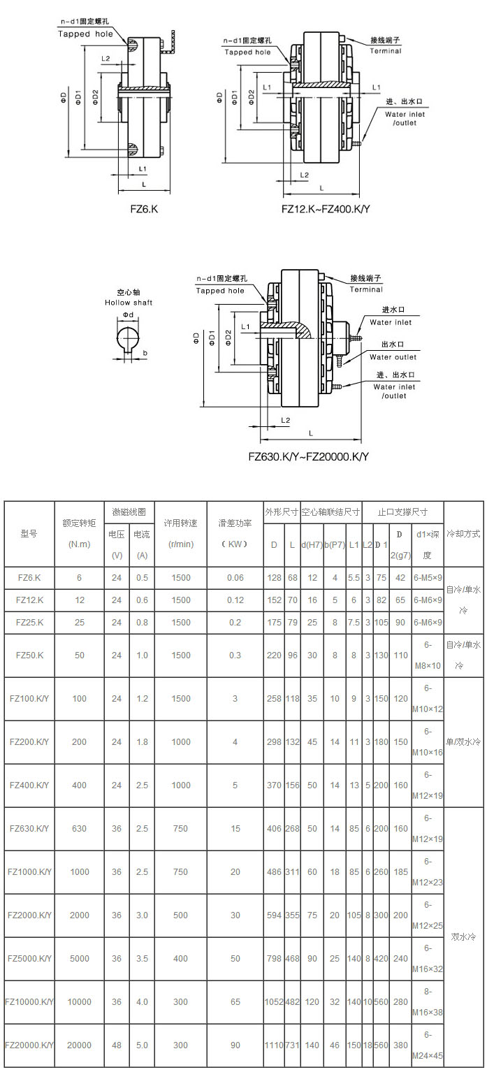 FZ6.K,FZ12.K,FZ25.K,FZ50.K,FZ100.K/Y,FZ200.K/Y,FZ400.K/Y,FZ630.K/Y,FZ1000.K/Y,磁粉制动器