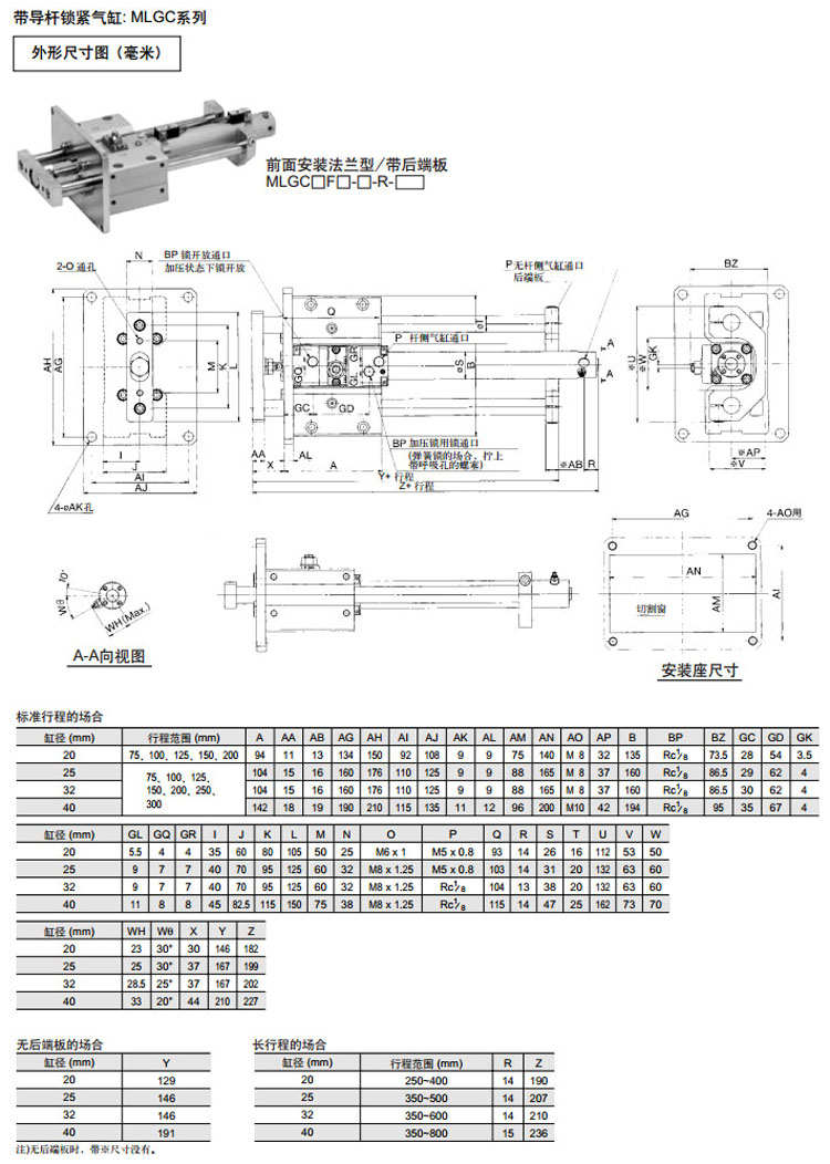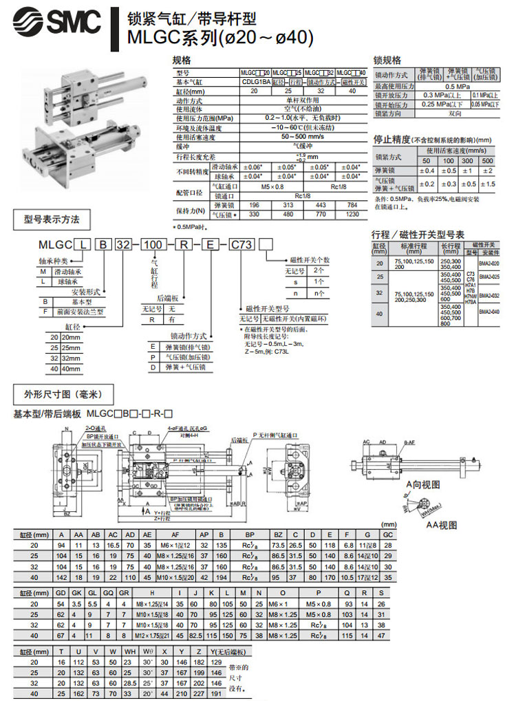 MLGCMB20-75,MLGCMF20-75,MLGCLB20-75,MLGCLF20-75,MLGCMB20-100,MLGCLF20-200,SMC带导杆型锁紧气缸