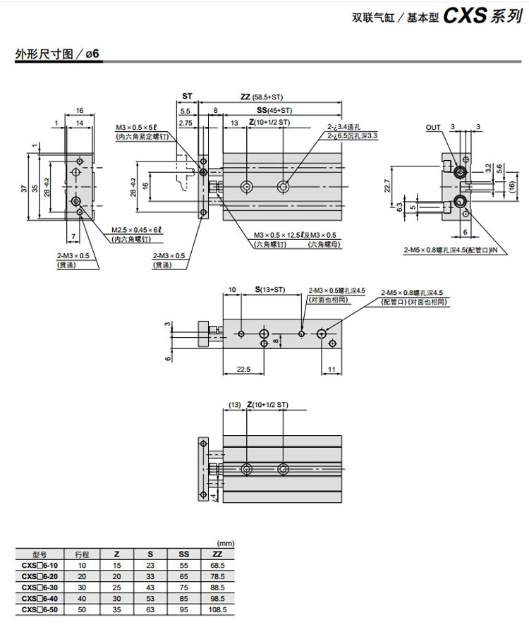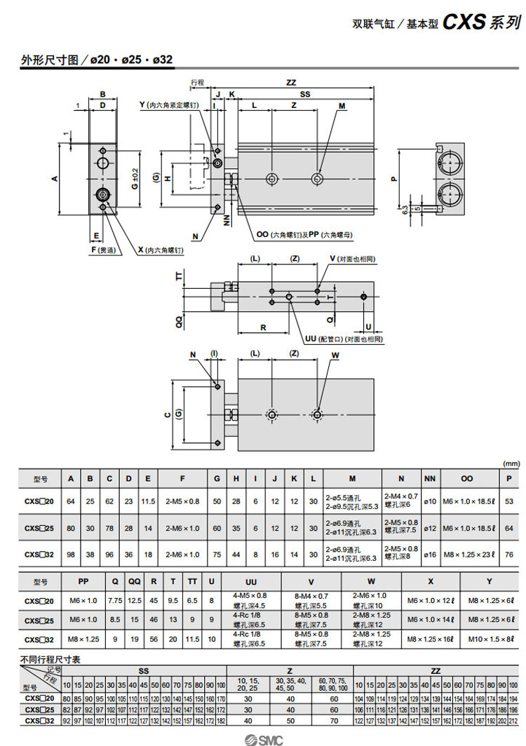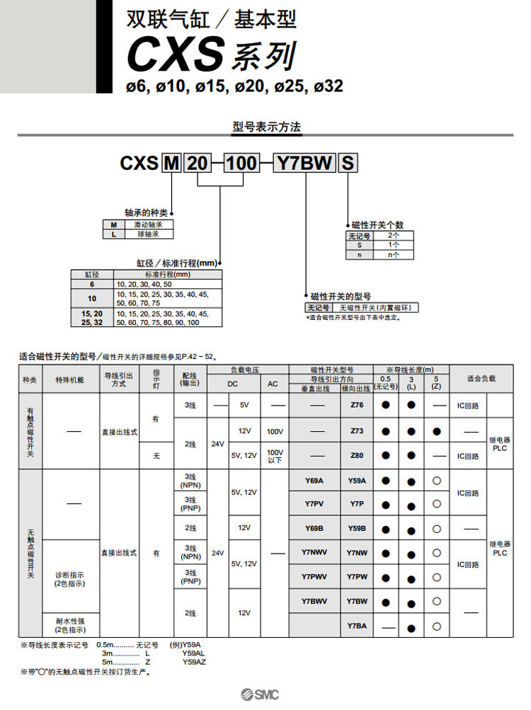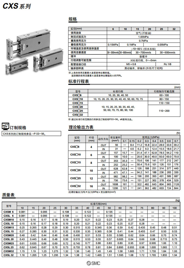 CXSM6,CXSM10,CXSM15,CXSM20,CXSM25,CXSM32,CXSL6,CXSL10,CXSL15,CXSL20,CXSL25,CXSL32,SMC双联气缸