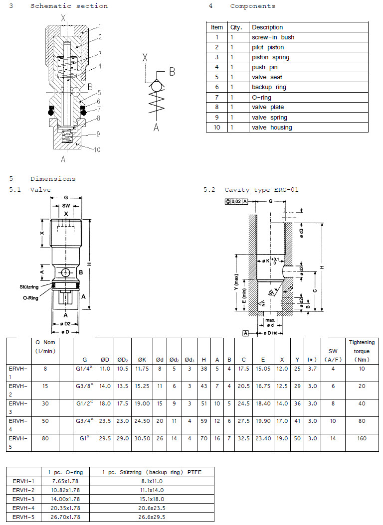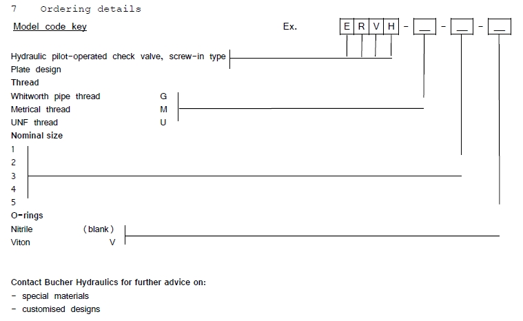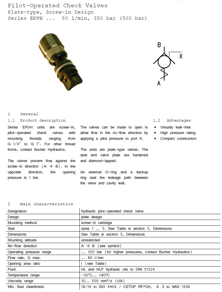 ERVH-G-1,ERVH-G-2,ERVH-G-3,ERVH-M-3,ERVH-M-4,ERVH-U-4,ERVH-U-5,Bucher先导式单向阀