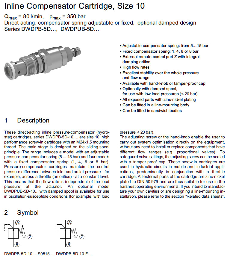 DWDPUB-5D-10-S0515-1,DWDPUB-5D-10-S01-1,DWDPUB-5D-10-S04-1,Bucher压力补偿器