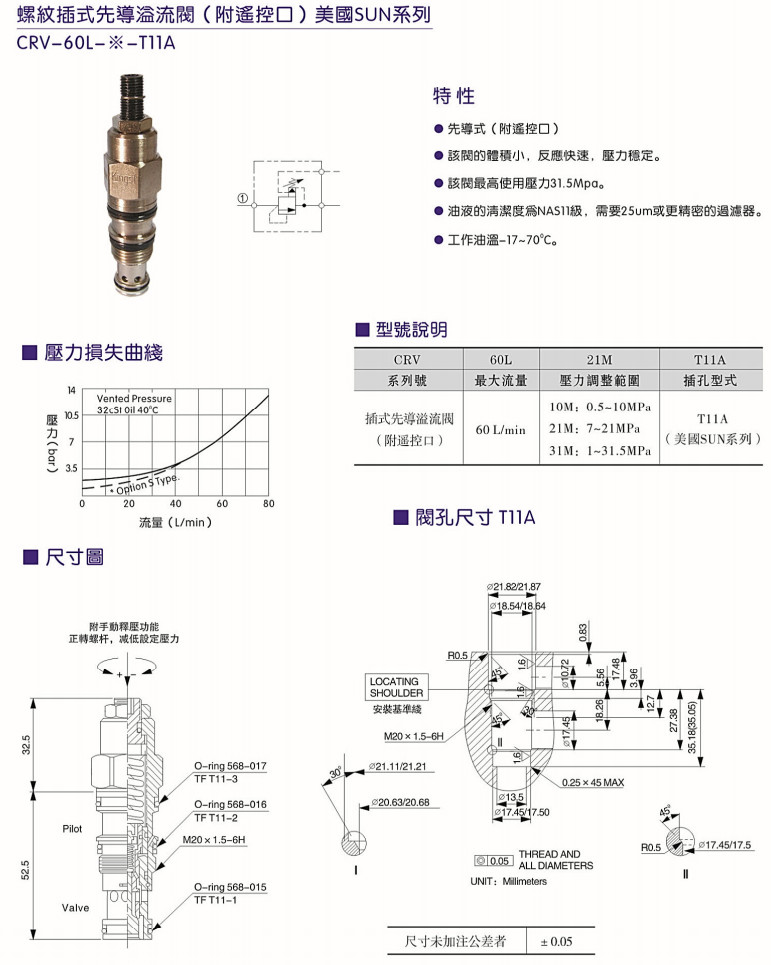 CRV-60L-10M-T11A,CRV-60L-21M-T11A,CRV-60L-31M-T11A,螺纹插式先导溢流阀