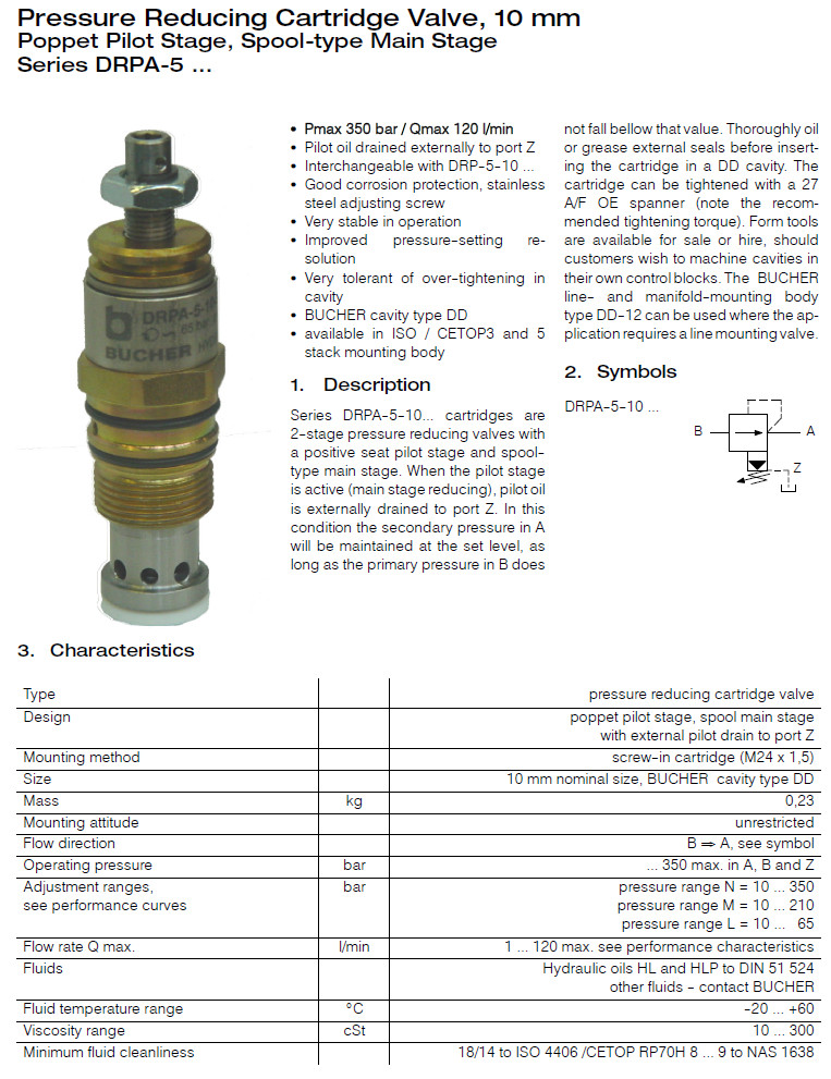 DRPA-5-10-SLM-3,DRPA-5-10-SL-3,DRPA-5-10-HL-3,DRPA-5-10-SM-3,Bucher减压阀