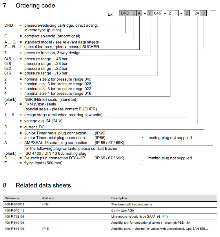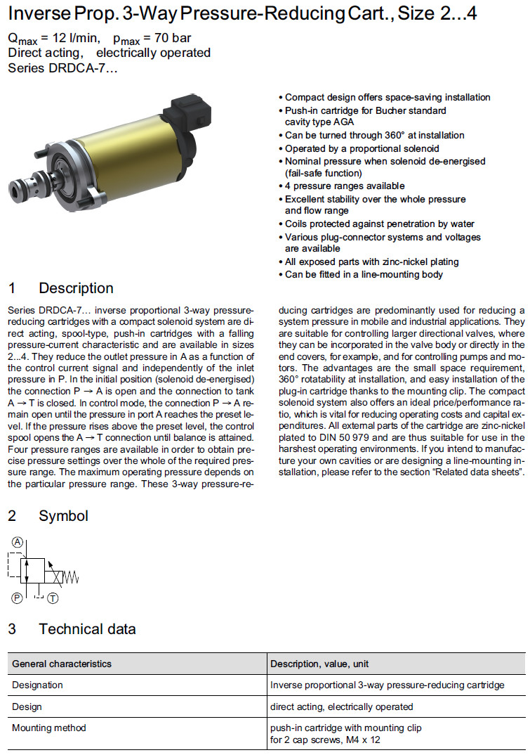 DRDCA-7045-2-2,DRDCA-7028-3-2,DRDCA-7022-3-2,DRDCA-7016-4-2,Bucher减压阀